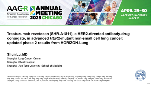 2025 AACR口头报告|ag真人国际官网创新药瑞康曲妥珠单抗治疗晚期HER2突变非小细胞肺癌研究结果披露